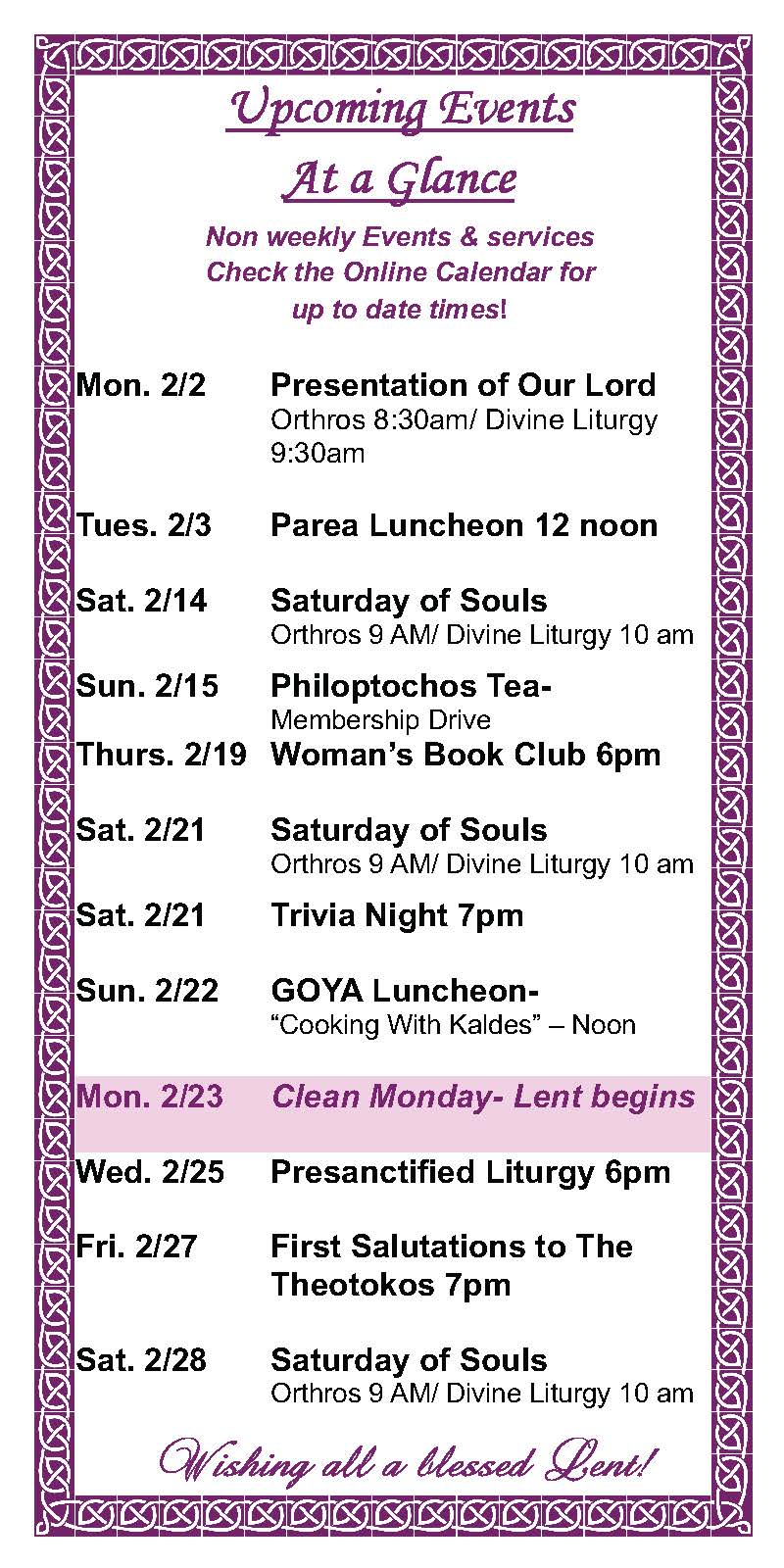 Calendar & Upcoming Events Upcoming parish events, services, and more.