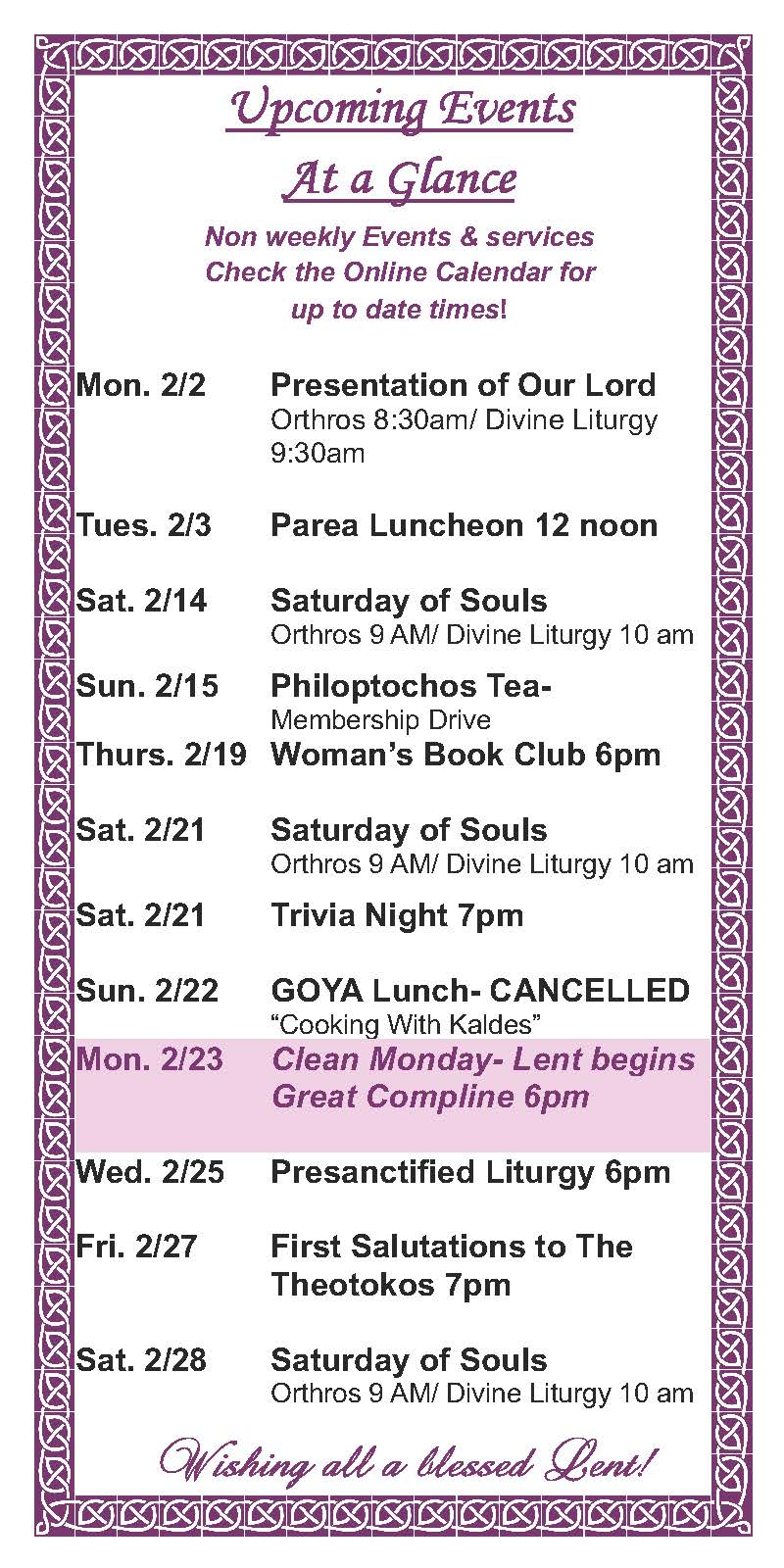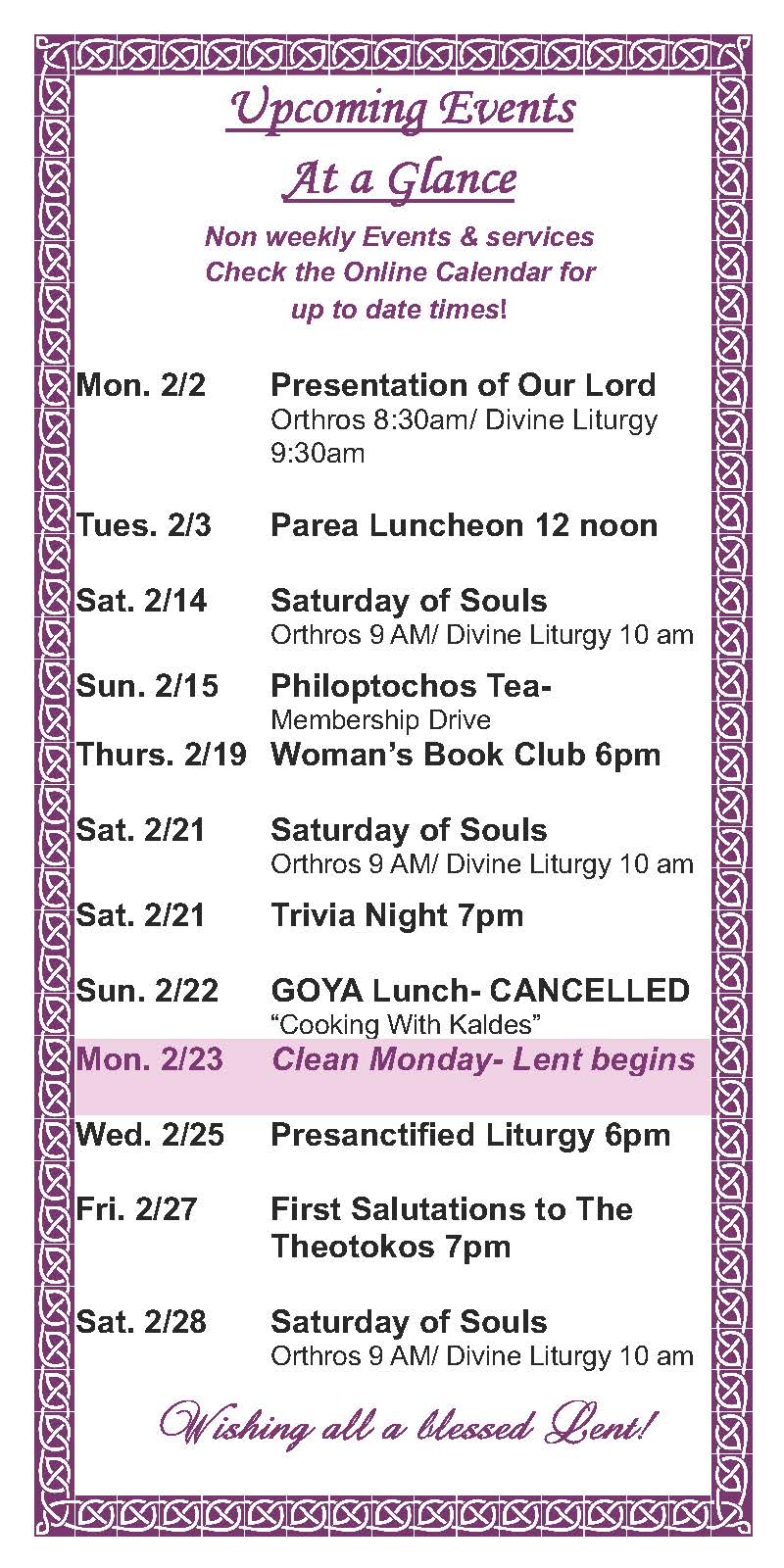 Calendar & Upcoming Events Upcoming parish events, services, and more.